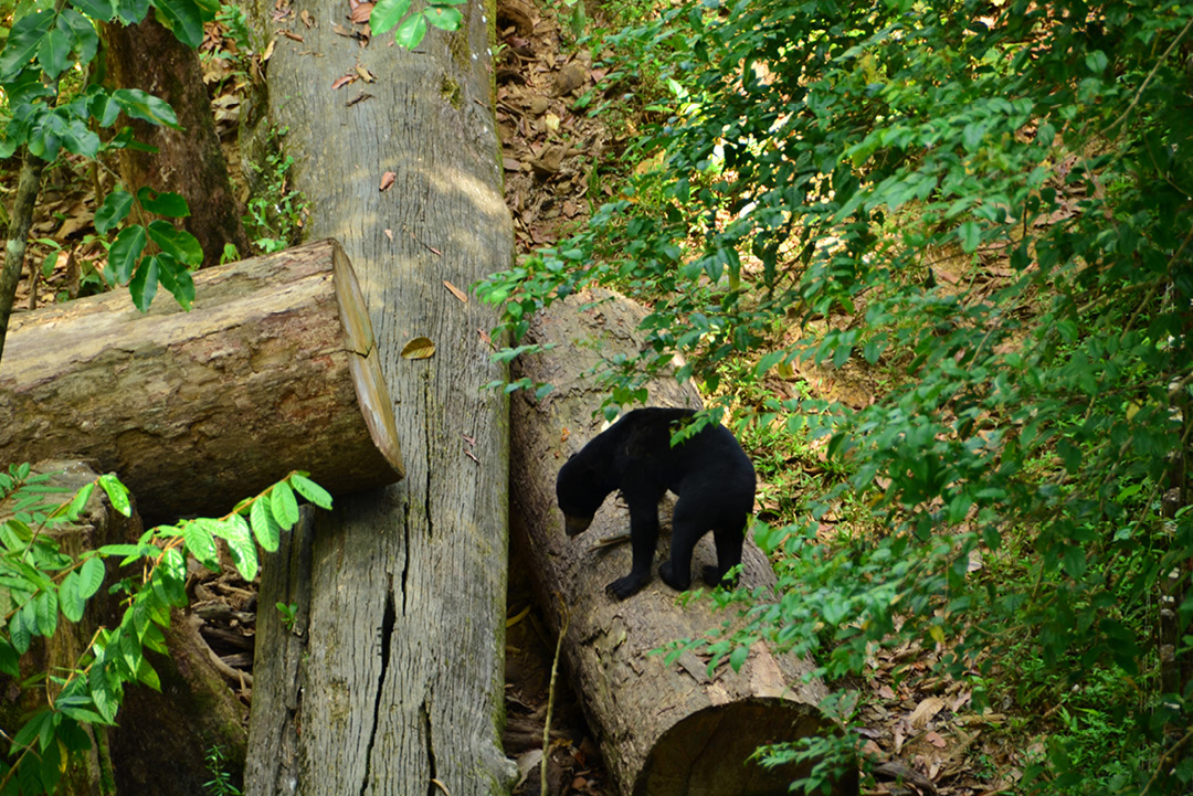 人猿中心对面是马来熊保育中心(Bornean Sun Bear Conservation Centre)。马来熊是世界上体型最小的一种熊,因其胸前有一撮形似太阳的明亮毛发也被称为太阳熊。这里目前放养着约40多只被救获的马来熊,并随时准备将它们再放归野外。在保育中心位于林间的空中平台,近距离观察这种体型矫健、善于爬树的濒危熊类。