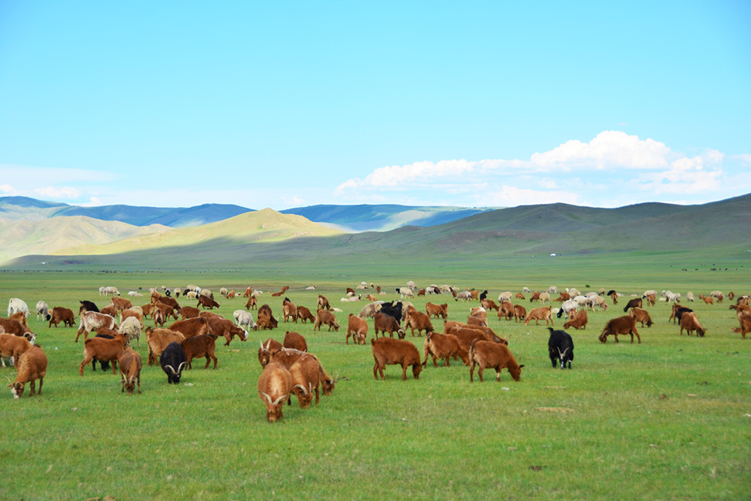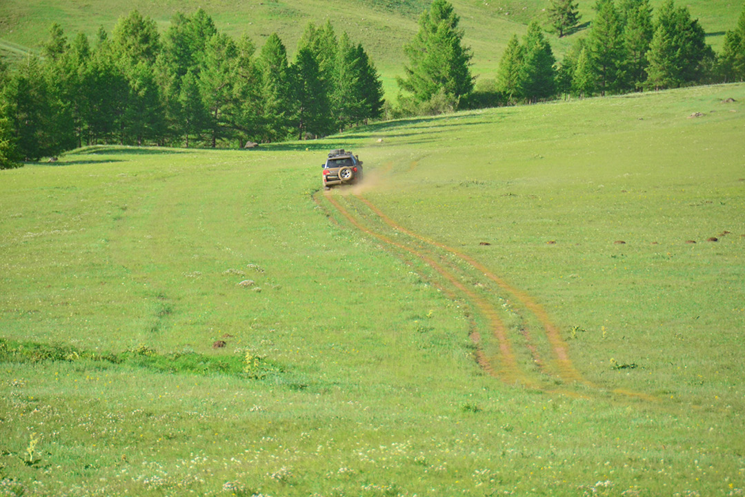 当车离开柏油路面,所有现代文明的痕迹将会消失。沿着美丽的草原山谷一路前行,山谷中点缀着星星点点的蒙古包,不时有牧民和他们的羊群经过。