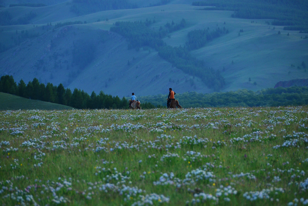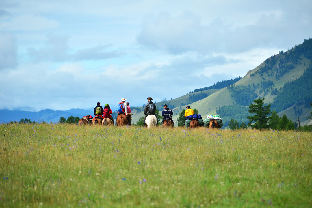 骑马穿过草原、越过河流,向远山出发。登上居高临下的山崖,一览壮丽的山谷和奔腾流淌的图拉河。