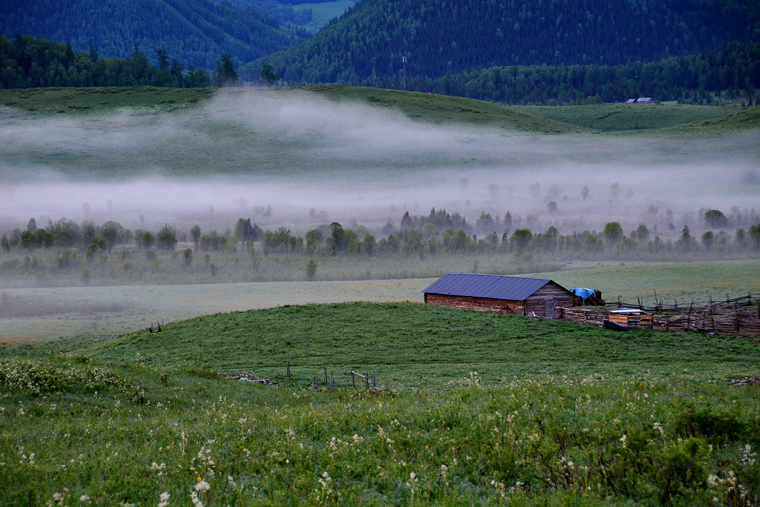 碧波荡漾的高山湖泊,晨雾缭绕的图瓦村落,在中国新疆最北端的阿勒泰,高山、森林、草原和湖泊构成了一幅幅壮美的画卷,成群结队的牧群、宁静美丽的村落点缀其中。
