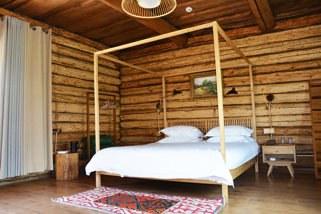 禾木桃源山庄目前有三个独立的院落,22间简单舒适的传统木屋房间,床品干净整洁,服务热情细致。酒店有一个在河边的小咖啡馆,旁边是餐厅以及部分户外用餐区域,晚上可在星空下品尝食材新鲜的本地火锅。夏季院子里时常开满野花,旁边就是欢快奔腾的禾木河,入住的客人可随时沿河畔散步,亦或坐在河边的木椅上小酌一杯。