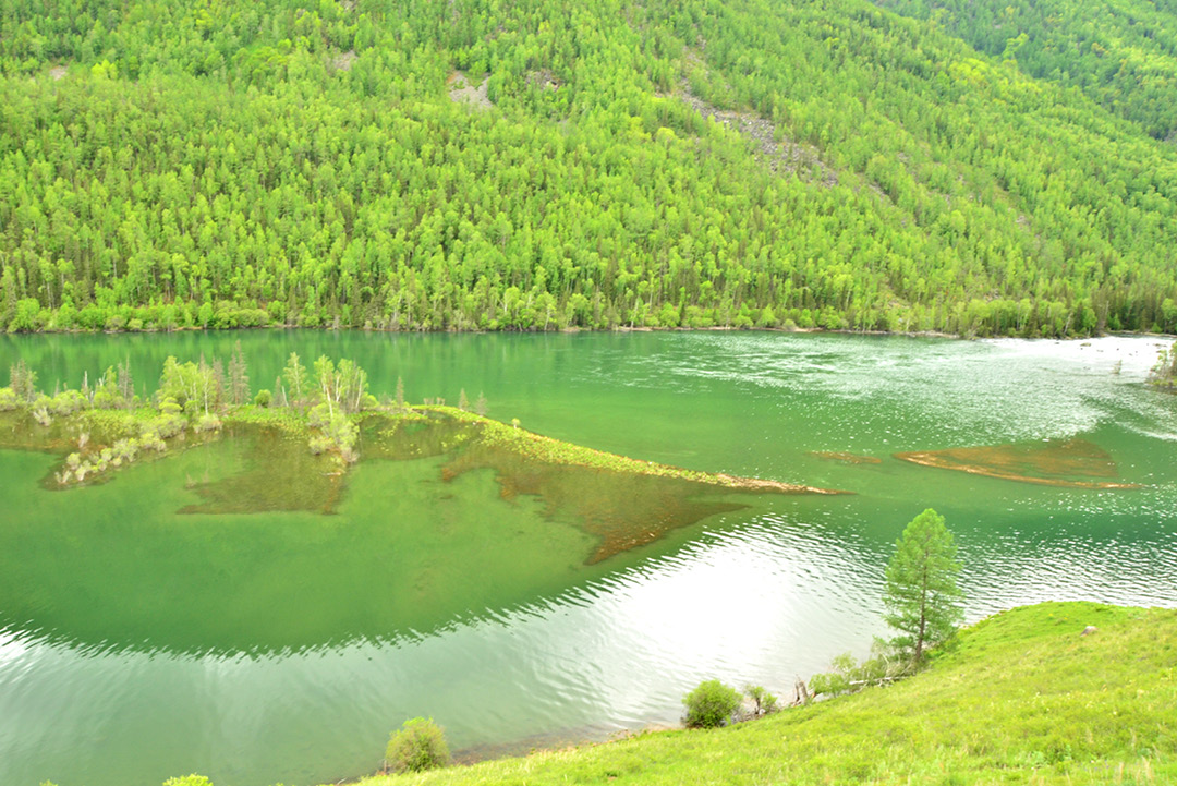 随后,乘车前往喀纳斯湖(车程约80公里 /2.5小时),沿途欣赏绮丽的高山草甸风光,以及喀纳斯著名的三湾美景 — 神仙湾、月亮湾和卧龙湾。喀纳斯湖水在林木葱郁的山间低缓处形成一个个美丽的浅滩,光与影在这里完美演绎、湖水颜色梦幻般的变化。今晚,入住位于喀纳斯湖畔的鉴苑山庄(入住3晚,复式家庭房)。