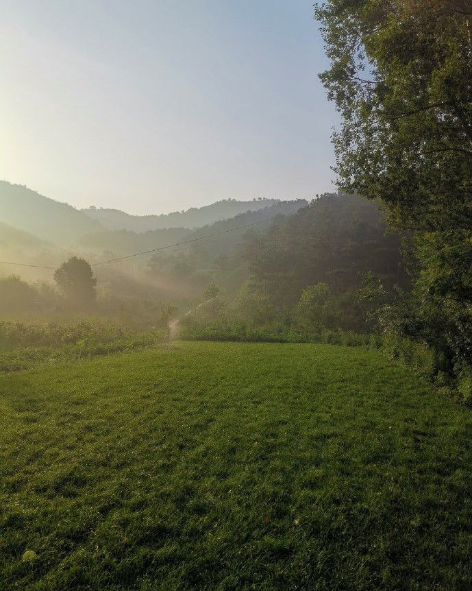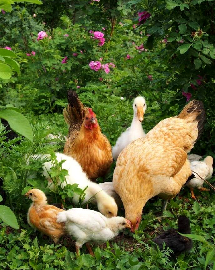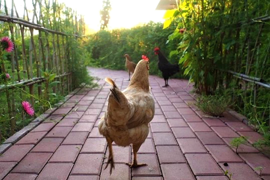 08:00 和农场主人徒步山林间去给鸡喂食,拎着小竹篮捡鸡蛋