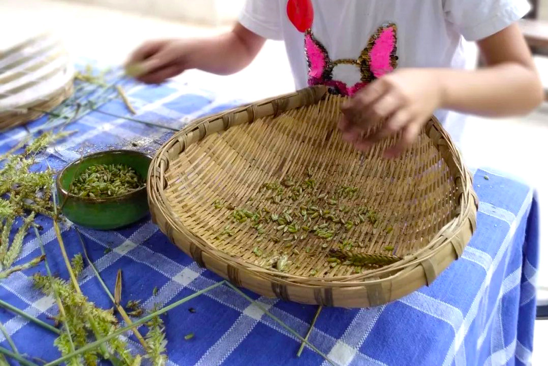 17:30 小朋友一起脱麦子,烤麦穗,搓麦粒,感受最新鲜的麦香