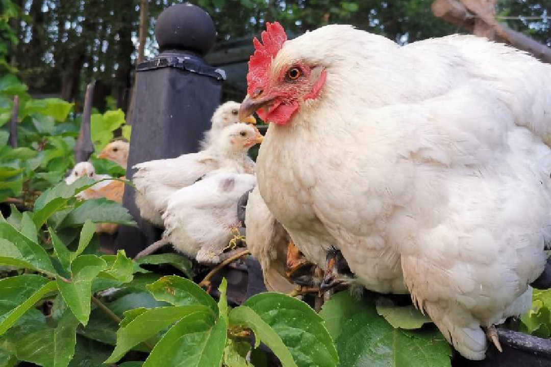 07:30 和农场主人徒步山林间去给鸡喂食,拎着小竹篮捡鸡蛋