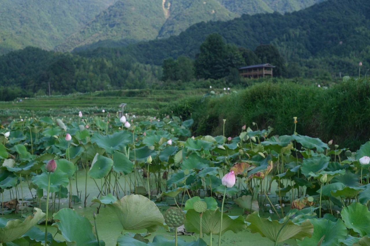 如果说这次在上坪见到的是揉进了历史风韵的荷塘,那么在坪上梯田见到的可能就是壮阔如碧波万顷的莲海。