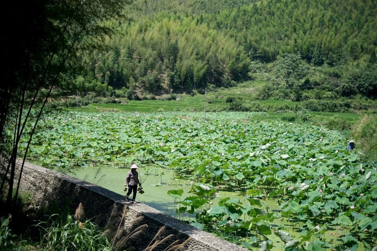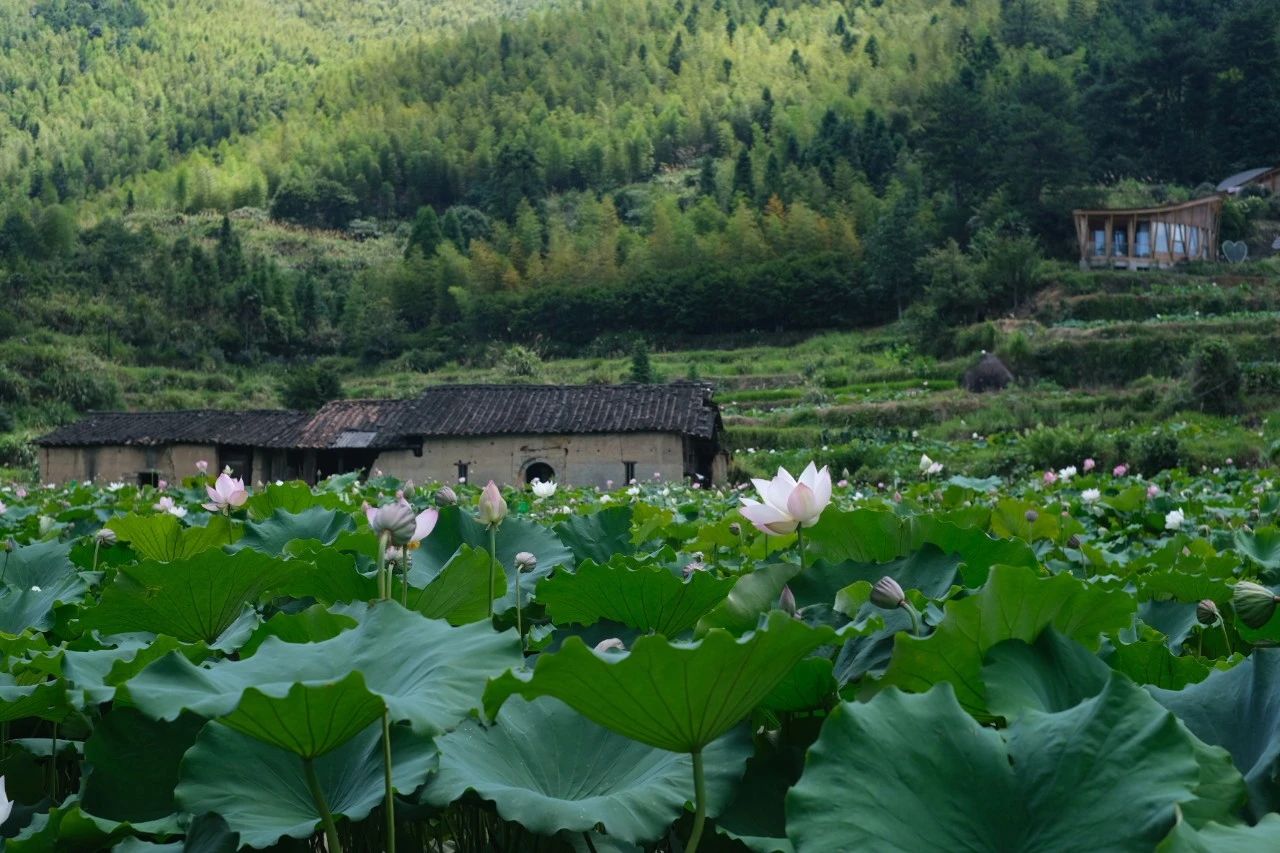 辗转到达这片八闽山水间的秘境,未及终点就已经被7月午后的艳阳融化,窗外田田莲叶无穷尽地向天边延展,蓝和绿勾画出最治愈的一方山水。