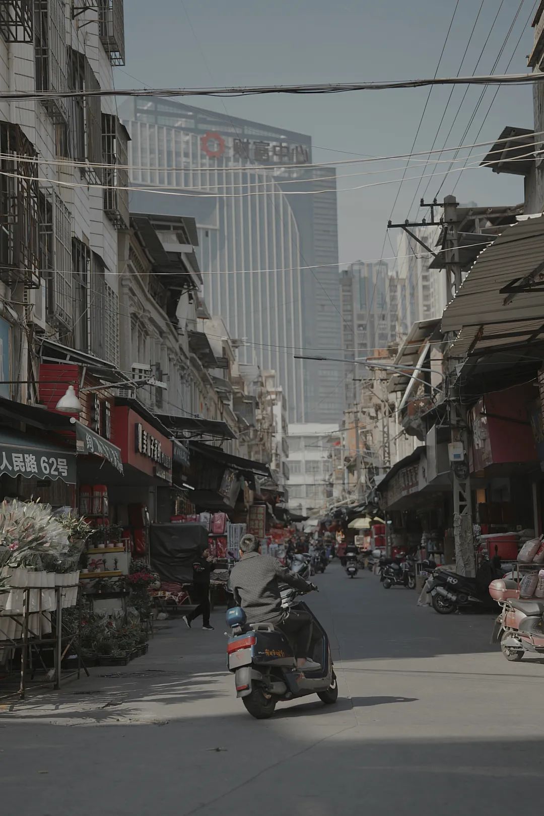 商户的房子破旧脏乱,对面就是高楼林立的「财富中心」。仿佛这里是上世纪八九十年代的存在,而走出老街就是二十一世纪的现代城。